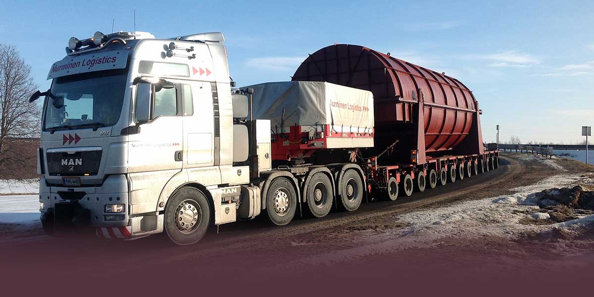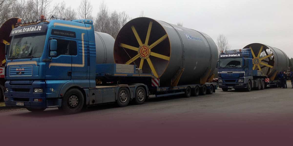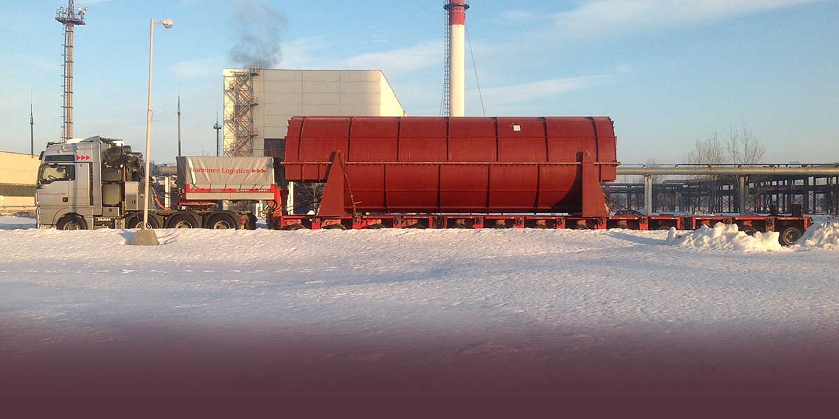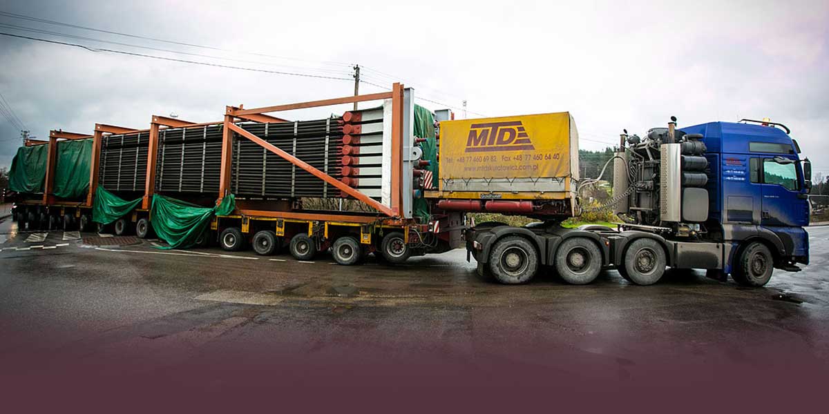 Transport sprzętu do produkcji opon wielkogabarytowych.